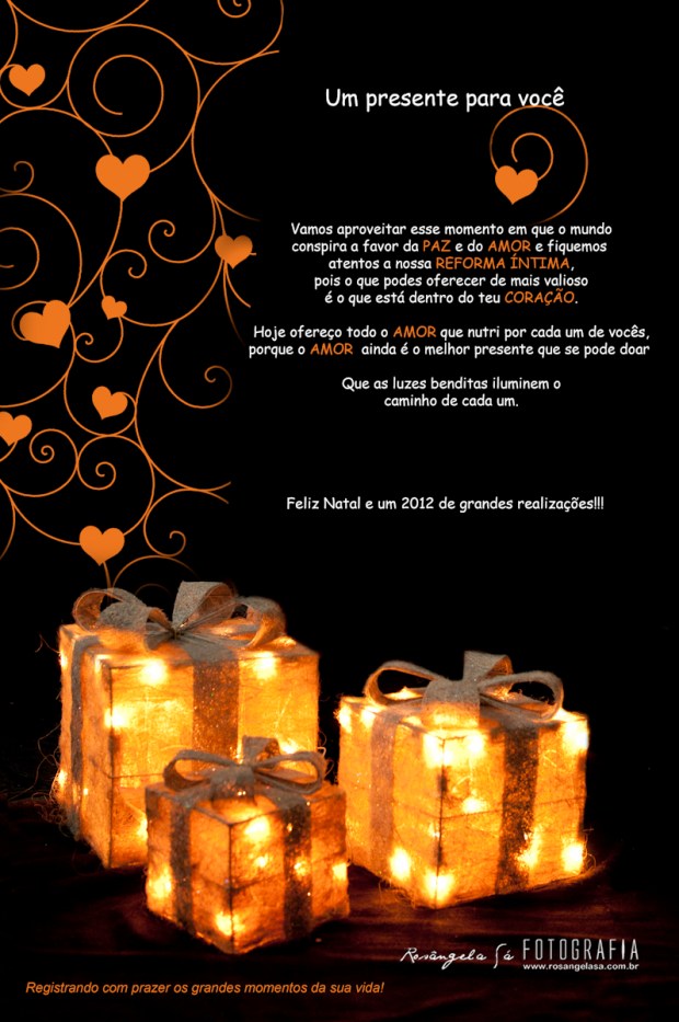Esse foi um ano espetacular na minha vida.Tive várias dificuldades que só me ajudaram a crescer e esse crescimento devo a cada um que acompanha o meu trabalho, nutrindo-me de comentários que são combustível para esse crescimento. Registrei lindas histórias e tive o prazer de conhecer pessoas maravilhosas, positivas.