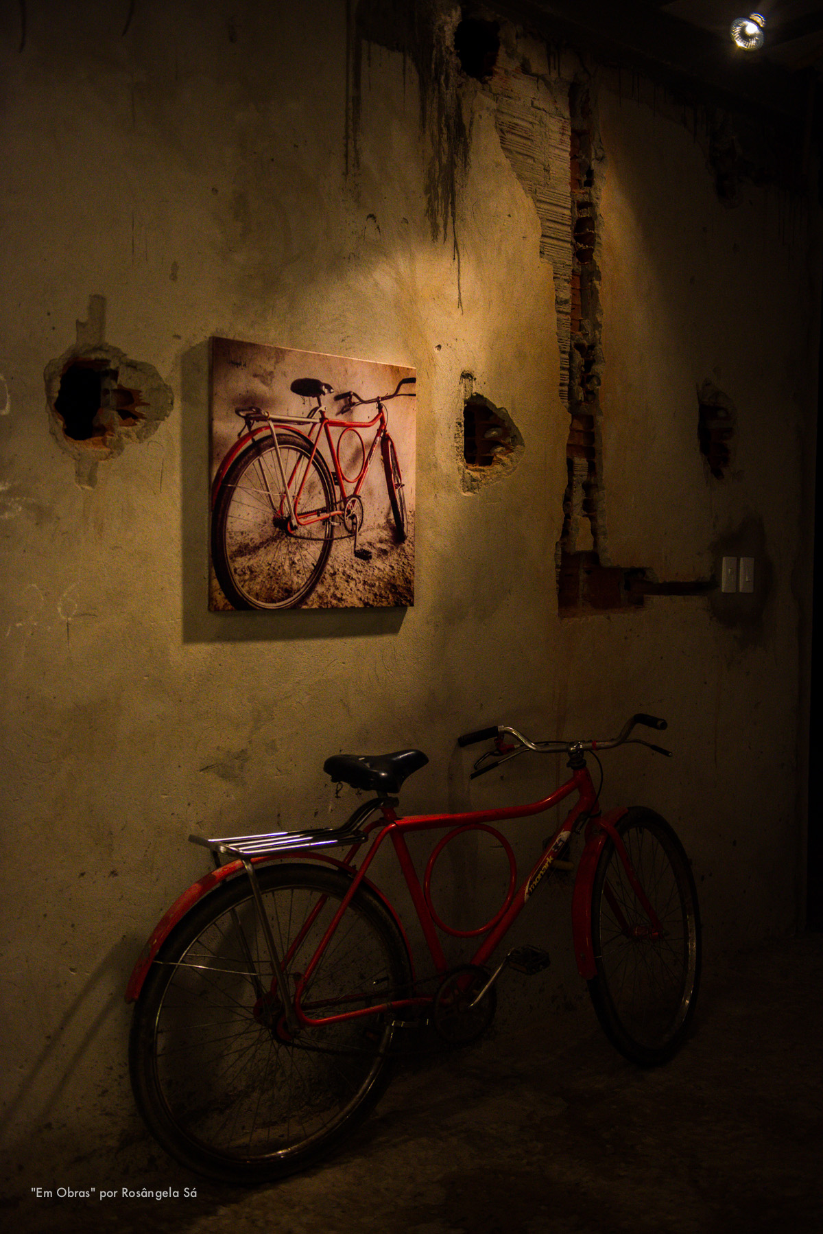 Participar da mostra “Em obras” assinando o projeto luminotécnico dos quadros e fotos foi uma experiência ímpar e desafiadora porque fomos corresponsáveis por transformar a atmosfera da casa em construção numa galeria de arte dando vida às imagens através da luz.